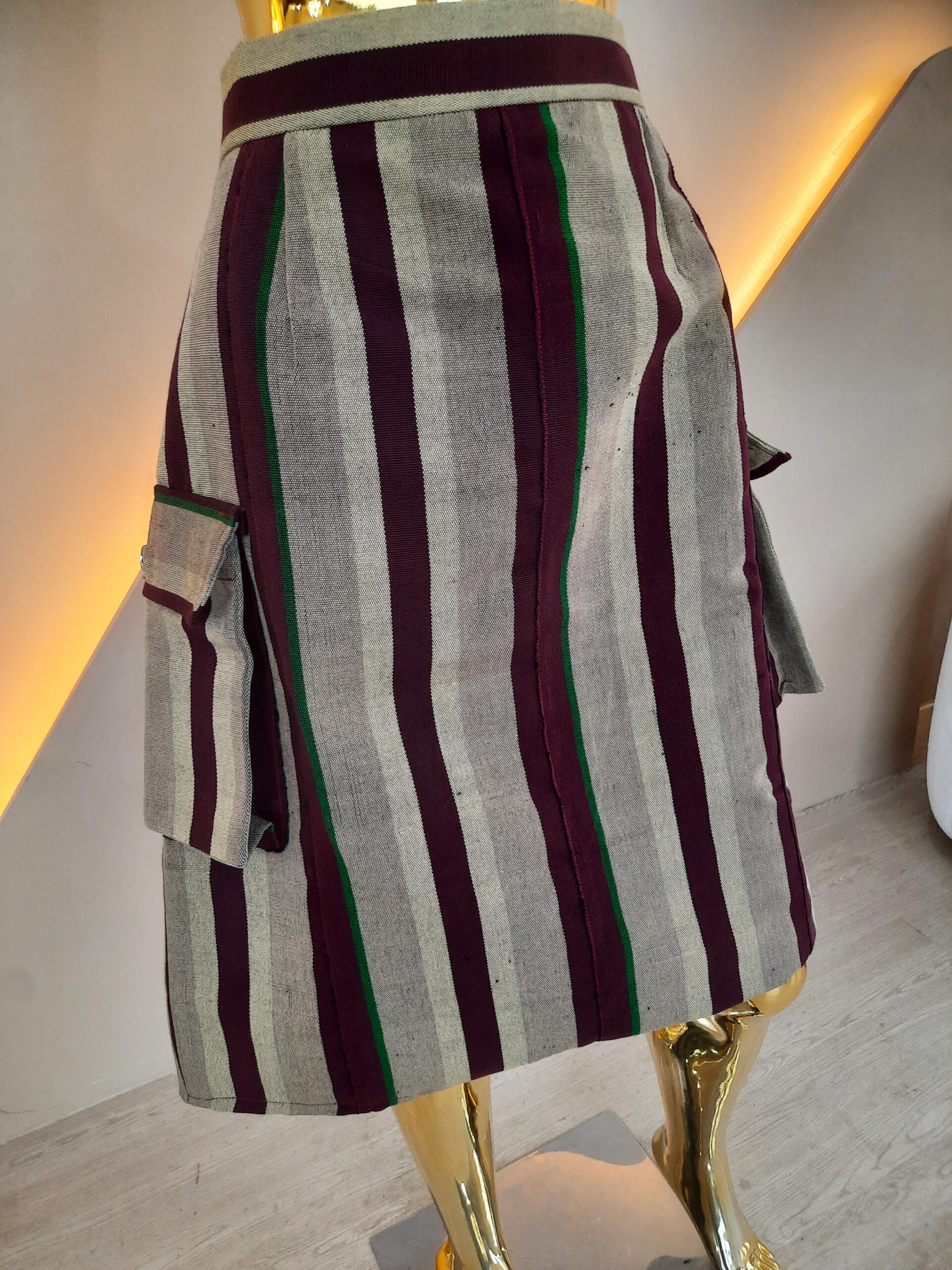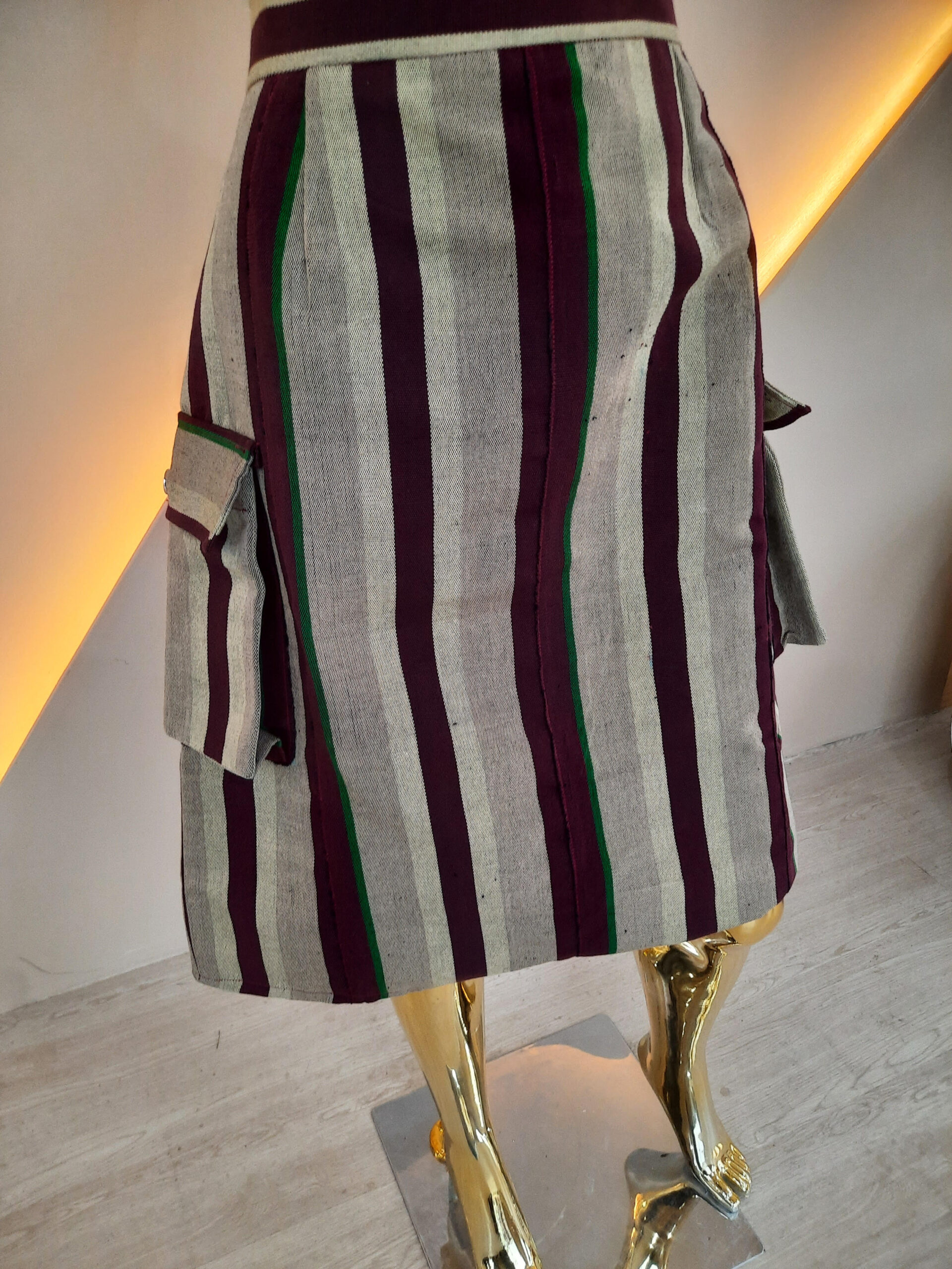 Multicolour Aso oke Cargo SKIRT With Pocket and Vintage BUTTON